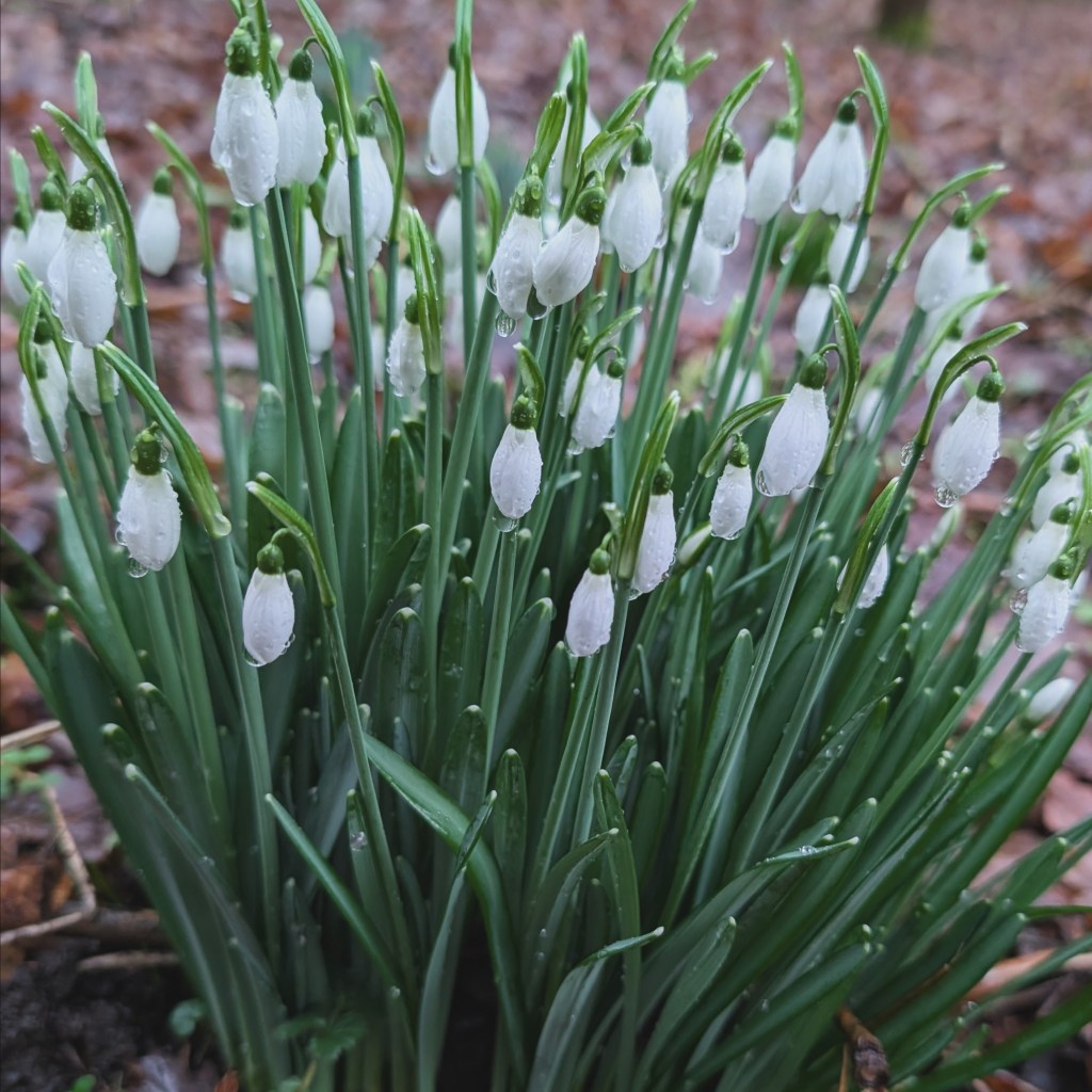 Snowdrops snatch the open sky